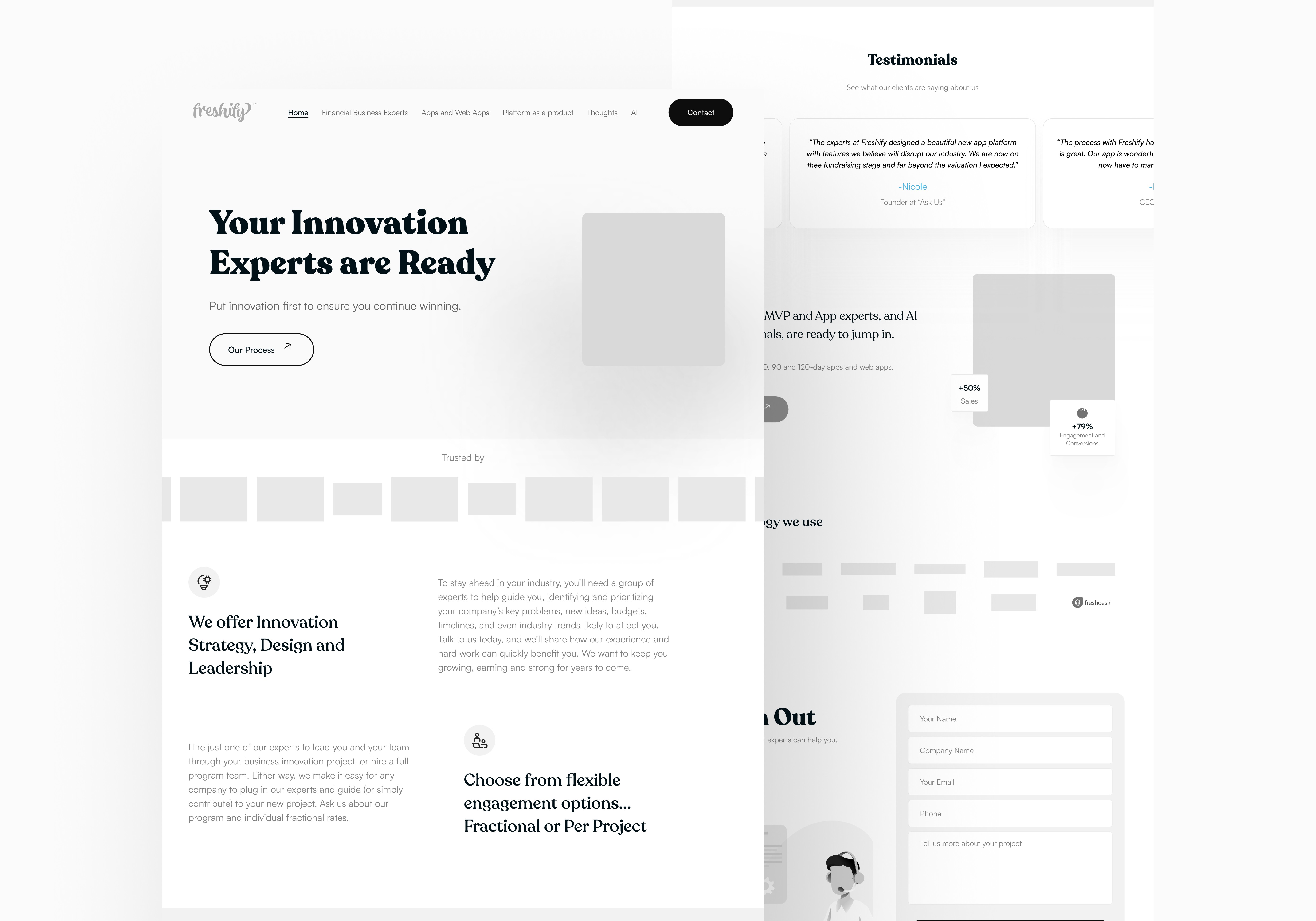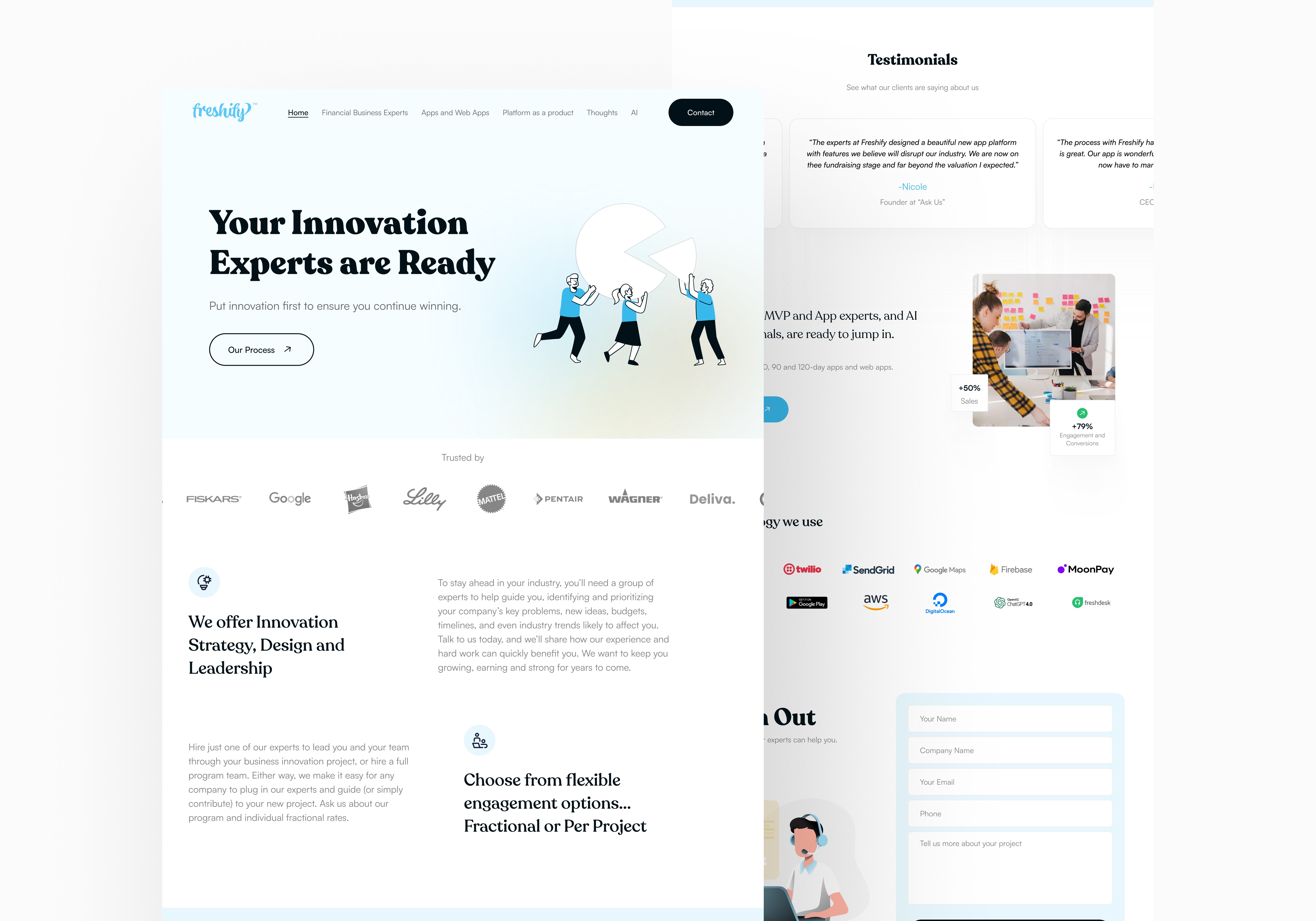 Position Freshify more clearly as innovation partner + product-builder, rather than just “web development shop.”